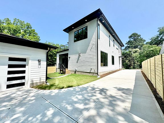 Modern urban infill masterpiece by Zenith Homes in the heart of downtown Raleigh. Designed for entertaining and work-from-home living, this home features MAIN FLOOR BEDROOM & FULL BATH, plus flex area ideal for hobbies/exercise or work-from-home office, a stunning chef's kitchen w/ waterfall island, two-tone cabinetry, 6-burner gas range, walk-in pantry + scullery. Screened porch w/ gas fireplace + Phantom screen opens to courtyard. Owner's suite includes spa shower + PRIVATE rooftop terrace. Oversized detached garage offers future carriage house potential (buyer to verify). Spacious laundry w/ custom cabinetry + storage for hobbies/crafts or even a pet sleeping area! Additional improvements - PRIVACY FENCE added to driveway & courtyard area which an be completed to create a fenced in yard/dog run area with acceptable Offer Terms! NOTE: Front den/study is enclosed with modern frosted glass door, and being converted to a bedroom & full bath in the next few weeks (by end of November). Choose tile for the main floor bathroom shower if you go under contract by the end of October. Located in the vibrant Mordecai/Oakwood/Capitol Heights community—walk to Optimist Coffee, Standard Beer+Food, Oakwood Dog Park, and more. Minutes to downtown Raleigh's restaurants, parks, and Person Street district. A rare blend of modern design, historic charm, and lifestyle convenience. Let's make this your next home!
