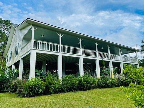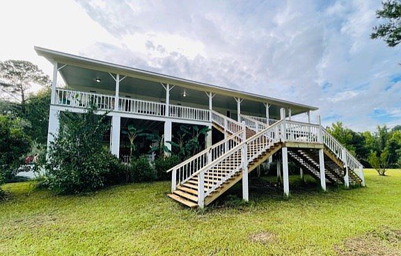 Unique, Stilt built waterfront home on 22 ac. Over 1000ft river frontage on the Choctawhatchee River. Ranch style interior. Amazing views from full length front & back covered poarches. Perfect getaway home! 4 fishing ponds & tons of wildlife. Lots of fruit trees. All living spaces on one level w/drive under 4+ carport. Home sits 90ft from the river bank. Home was built to withstand wind (150+mph) and floods. 2 tons steel foundation; block stilts filled w/concrete. Property is completely fenced