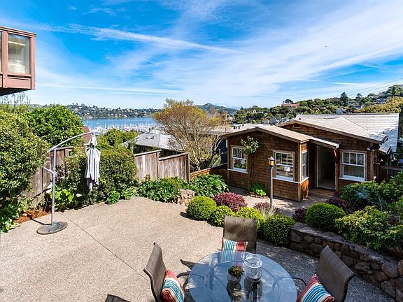 Quintessential Sausalito! Two houses, two addresses, one street-to-street lot. 4BR/2BA historic main home (circa 1915) on Locust, and separate 1BR/1BA cottage on Filbert, with terraced patios in between. Vintage charm, airy and bright, with updated features, modern kitchen, stained glass, floor-to-ceiling windows and water views. Walk to Caledonia St., shops, restaurants, and ferries; drive in minutes to Golden Gate Bridge and San Francisco.