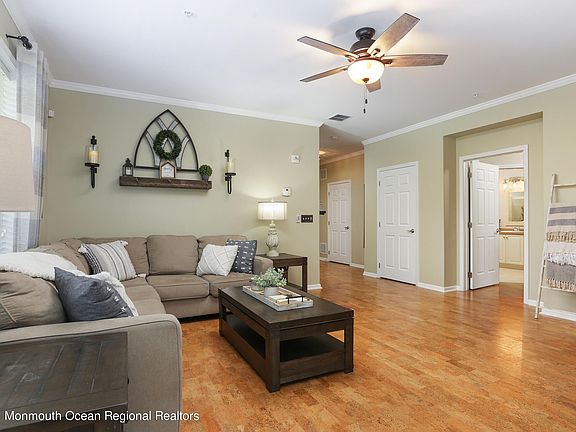 Absolutely gorgeous, and truly move-in ready spacious second floor two bedroom end unit, located in desirable Mill Pond of Eatontown. Sun drenched south facing condo, located on a very private setting within the complex, facing the beautiful manicured grounds. Ample foyer, amazing primary en-suite, spacious second bedroom , open floor concept living/dining area with fireplace. Kitchen with brand new SS appliances, 42'' cabinets, tiled backsplash, mint bathrooms, 9' ceilings, freshly painted with neutral color palette. *One of the few units with one car garage* balcony with storage. Minutes to prime beaches, shopping, easy access for commuters to GSP, Route 18 and NJ Transit train station to NY. Just unpack and begin enjoying a carefree lifestyle with all the Jersey Shore has to offer.