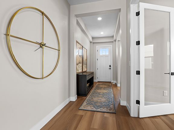 Fully finished rambler with walk-out basement and spectacular unobstructed views! Rare to find a new home in Mapleton with views like this. Located in the very desirable Bella Vita community. All homes are designed with main level living, minimal stairs, and affordable luxury features. This "Bianca" floor plan is a true gem. Everything you need is on the main level: Primary bedroom with luxurious bathroom, Zero entry Euro glass shower, Pass through closet to the large laundry area with sink, Large home office, Secondary bedroom next to a full bath, Voluminous 10' high ceilings, Luxury kitchen with oversized pantry. Charming rock fireplace, views from the large dining area windows , Large deck with views off the family room. And that's just the main level! Use the main level every day, then enjoy your holiday parties and family gatherings in the huge basement complete with oversized recreation area, 3 additional bedrooms, full bath, covered patio, tall 9' ceilings. From the basement, you can take the party to the new community pool, or enjoy dessert under the gazebo. Since Bella Vita is a fully maintained community, you can throw away the lawn mover and snow blower. Located on a quite cul-de-sac for maximum privacy. Spend your time enjoying the "Beautiful Life" at Bella Vita!
