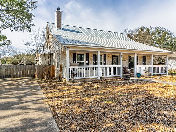 Welcome to your slice of paradise in downtown Boerne! This beautifully remodeled home offers the perfect blend of modern amenities and classic charm. Situated on an oversized lot, there's ample space for entertaining, gardening, and even adding your dream pool. Outside, you'll also find a covered patio ideal for alfresco dining and enjoying the serene backyard oasis. From the circular driveway to the oversized front porch, you will step inside to discover a cozy living space complete with a stunning fireplace, perfect for unwinding after a long day. The upgraded kitchen boasts elegant granite countertops, stainless steel appliances, an island with bar seating, and plenty of storage space, making meal prep a breeze. Escape to the spacious master suite featuring a luxurious en-suite bathroom and a walk-in closet. Two additional bedrooms offer plenty of room for guests, a home office, or a hobby room. Additional upgrades include: Roof replaced with metal roof in 2020, HVAC replaced in 2020, Water heater replaced in 2020, All windows replaced in 2022, Concrete slab and patio cover added in 2020, Induction cooktop added in 2021. Located in the heart of downtown Boerne, you'll enjoy easy access to shopping, dining, and entertainment options. Don't miss your chance to own this exquisite home! Schedule your showing today.