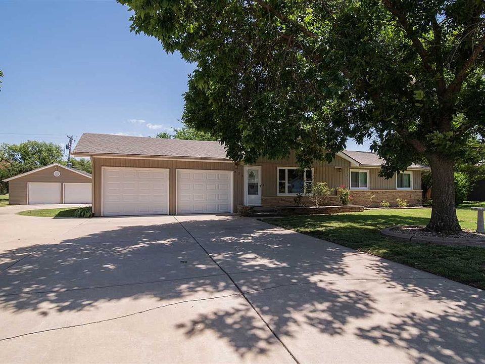 Looking for extra garage, shop or hobby space on nearly ½ acre? This exceptionally well-maintained home offers 2 car attached garage plus 3 car detached garage with 220 electric service, and is heated and cooled. 3 BR 2 BA Ranch home with brick and vinyl siding in move-in ready condition and great curb appeal with covered front porch. Living room opens into kitchen and dining space with tile floors and solid surface counter tops. All kitchen appliances stay with the home. Don't forget to check out the large mud room with washer and dryer that will stay with the home. The large family room (23'X17') provides ample space for pool table which stays and a wood burning stove adjacent to the seating area. The master suite offers a master bath with one sink and a shower. Two more bedrooms and linen closet round out the living space. Outdoor entertaining spaces include a large covered deck and covered patio, and a large back yard with plenty of shade from mature trees. Plenty of space for boat/RV parking. Updates include fresh interior and exterior paint, updated flooring, countertops, newer windows, roof, electric panel, water heater, exterior doors, refinished kitchen cabinets and interior doors, additional insulation, water softener, garage doors. The detached shop has LED lighting, and one bay has been used as a paint booth. There is additional storage at the back of this building. Don't miss this exceptional home - Call to schedule your private showing today!