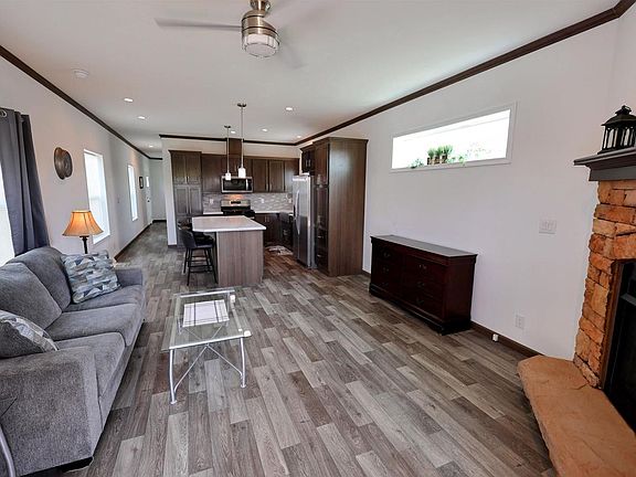 PRICE REDUCED! VERY MOTIVATED SELLER! Furnished & Very lightly used 2024 2 bed 2 bath manufactured home in new condition. Has a large 1 car detached garage and nice front porch. Primary bedroom has a private bath with walk in shower. Located on the North side of Tomah in Lake Shore Landing. This is a Manufactured Home for sale, located on lease land, NO land included in sale. Garage belongs to land owner, but current lot renter has exclusive use.