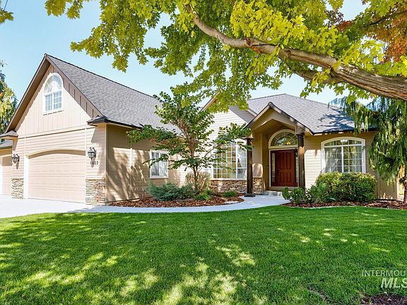 Beautiful home from the inside out! This single level home with the above bonus room (could be used as a 4th bedroom) has a fantastic layout. The primary bedroom is on the main floor with guest bedrooms on the other side of the house. The east facing backyard has views overlooking the park like backyard. This property has large mature trees, covered patio, manicured lawn and a private setting so you can relax within your own oasis. There is potential for RV parking, 10x12 shed and a large three car garage with plenty of storage! In the last few years the sellers have replaced the roof, water heater, flooring, HVAC, installed rain gutters and had the exterior painted. This home is move in ready! Close to Lake Lowell, schools, parks etc. This home will not last long. Come and see this home today!