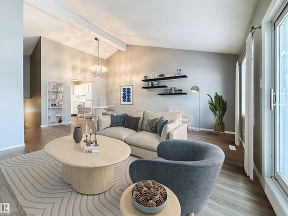 This bright and beautifully updated 2 bed, 1 bath bi-level townhouse offers smart style and incredible value in 1000 sq ft of total efficient space. Perfect for first-time buyers or investors, it features a modern open-concept layout, soaring 16-foot vaulted ceilings, and brand new carpet and countertops throughout. Freshly painted and move-in ready, this home stuns with a rare, unobstructed view off the patio, backing onto a huge green space with two schools. The sun-filled living area flows seamlessly to the kitchen and dining space, while main floor laundry adds convenience. With a newer hot water tank, low condo fees, and a superb location near YMCA, West Edmonton Mall and Callingwood Shopping Centre, this is the ideal starter home or investment property in one of Edmonton’s most connected neighbourhoods. Welcome Home!
