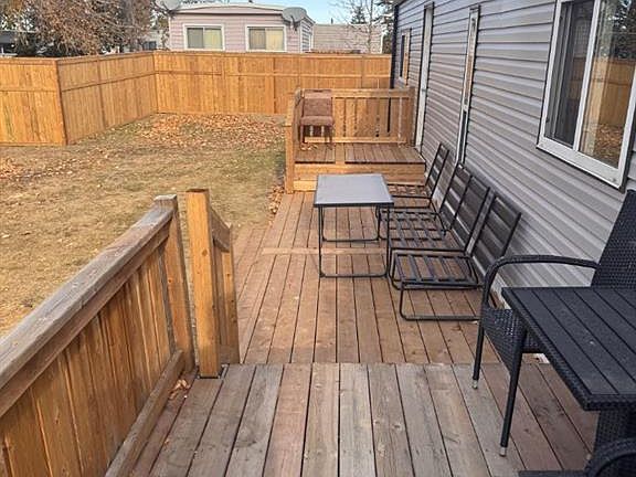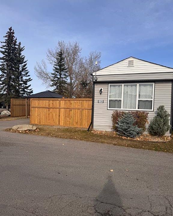 Buyers incentive, the lot rent has been paid until Feb 1st 2026!! Welcome to Calgary Village featuring this fully renovated large bright and open 2 bed 1 bath 914sq ft mobile home. This home has new vinyl plank flooring, new paint throughout, a brand new carport with led lights for the evening. The kitchen has brand new stainless steel appliances, the furnace was just serviced and vents cleaned. The lot is huge with a massive fully fenced yard and a beautiful huge deck for entertaining. There is a huge new shed behind the home for all your storage needs. Priced to sell…….this is a must see!!!