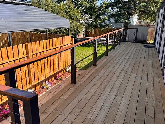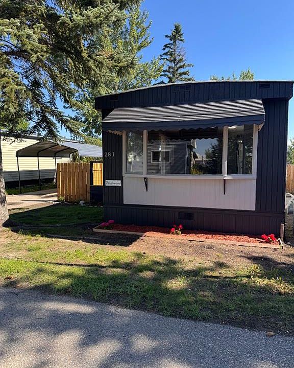Welcome to Calgary village featuring this bright and open 2 bedroom 1 bath mobile home. With extra large bedrooms a Jack and Jill bathroom, and a brand new kitchen with a tiled backsplash, this home is perfect for a small family. The home has been freshly painted, and has waterproof vinyl plank flooring throughout. It has new bathroom vanities and new windows in the main area of the home. The electrical sockets and light fixtures are all brand new. Outside you will find a large deck for entertaining, low maintenance landscaping and a large carport that can fit a truck. It’s move in ready and wont last long!! Book your private showing today! The lot rent is $1,257 a month and includes water sewage and garbage. You have access to the club house with a gym. All breed of dogs are allowed but a maximum of 2.