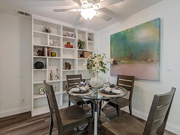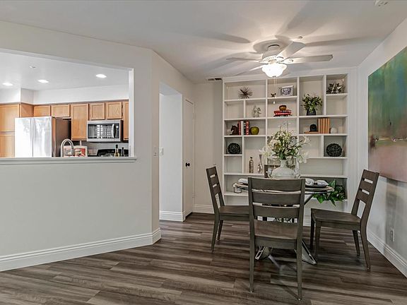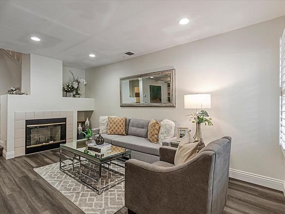 This charming 2-bedroom, 2.5-bath townhouse offers 1,293 square feet of comfortable living. Enter through a private front patio and fenced entrance into a welcoming living room with a gas fireplace, recessed lighting, and laminate flooring throughout the main areas. The bright kitchen features granite countertops, stainless steel appliances, and ample cabinetry. Sliding doors open to the patio, perfect for outdoor dining and gatherings. Upstairs, the large master suite includes high ceilings, two mirrored closets, and an en suite bathroom with a dual-sink vanity, bathtub, and shower. The additional bedroom upstairs provides flexibility and comfort, ideal for guests, a home office, or extra living space. Additional features include a dedicated laundry room and an attached one-car garage. Located in the California Grove community, this townhouse offers privacy with no neighbors above or below. Enjoy amenities like a pool, basketball court, and dog park. Conveniently close to coffee shops, restaurants, Target, Safeway, Kaiser Hospital, and highways 85, 87, and 101.