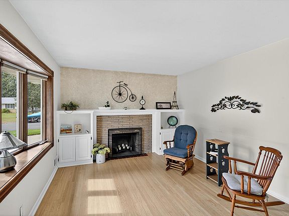 Step inside and you’ll immediately notice the pride of ownership throughout. Original hardwood floors add timeless character, while the cozy fireplace is flanked by built-in bookcases, creating a warm and inviting living space.