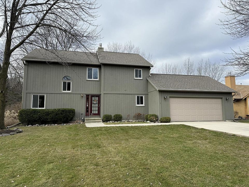 Beautiful modern style custom built home on almost 1/2 acre lot nearby Lake Michigan. Huge open main living area has gas FP, patio door walkout, great space for floating furniture arrangement, + a dining area & nook w/ wall of windows looking out to the tree lined backyard! KT updated in '23 has, quartz countertops, huge island w/ seating, modern lighting, tons of cabinet & counter space + pantry! Upstairs are 2 large BRs, 2 full BA, + den/home office originally built as a library which could be converted to 3rd BR if needed. Master ensuite has WIC, makeup counter, & full BA w/ soaking tub, step in shower, & double sinks. 1st floor laundry off 2.5 car attached GA entry. Huge wood deck accessible by two patio doors overlooks the big fenced in yard ideal for pets or little ones!