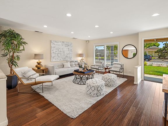 Palms frame an oasis on a tree-lined street at 6220 Covington. This single story, 3BR, 2BA + Bonus Room home is an updated ranch in the delightful Lake Los Carneros neighborhood.