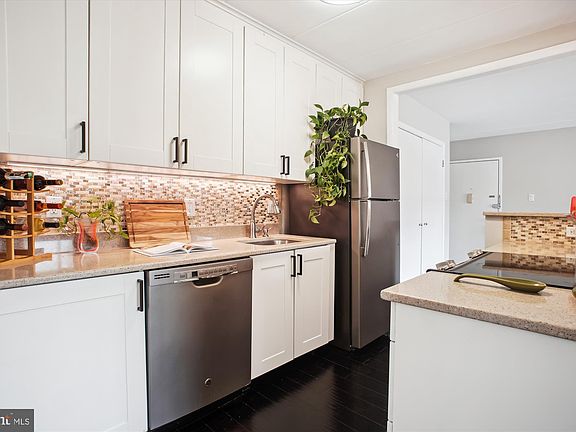 Step into modern elegance at this meticulously renovated condo, nestled in the vibrant heart of Alexandria. Imagine culinary creations coming to life in your stylish kitchen, featuring a built-in microwave, sleek updated countertops framed by a stunning tile backsplash, and a charming breakfast bar illuminated by chic pendant lights. The sun-drenched living space, where spectacular natural light pours in through sliding glass doors leading to your private balcony, creates an inviting atmosphere perfect for both relaxation and entertainment. Picture cozy dinners in your dedicated dining area, illuminated by the glow of the lighted ceiling fan. All this is complimented by gleaming hardwood floors and a generous foyer closet which doubles as a convenient pantry. Retreat to the serene bedroom suite, boasting two spacious closets, including a walk-in closet with custom fittings designed for optimal organization. The beautifully updated bathroom showcases stylish tile work and a modern vanity, complete with a convenient front-load washer and dryer. Edsall Terrace offers a tranquil escape with its quiet community vibe, complete with a refreshing pool and picturesque picnic area – perfect for creating lasting memories. Enjoy unparalleled convenience with quick access to major highways (I-395 & I-495), just 1.5 miles to Van Dorn Metro Station, and metro bus stops right at your doorstep, making commuting a breeze. Indulge in the diverse shops, delectable restaurants, and vibrant entertainment options that Alexandria has to offer. Welcome home!