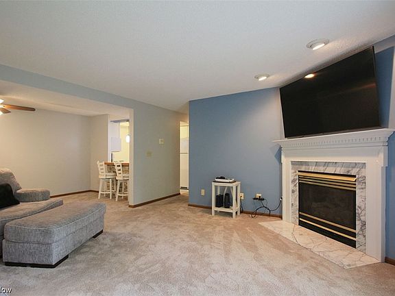 Welcome to this well maintained open floor plan condo with a secured entry in Hidden Creek located in Amherst School District. This open 3 bedroom and 2 bathroom unit was freshly painted with new carpet installed fall 2022 throughout the main areas. Living room with sliding glass doors opens onto a private balcony overlooking a spectacular green space with view of creek. Fireplace is adjacent to the dining area that can be enjoyed during dining or relaxing. Kitchen is efficient with a dishwasher, range, refrigerator, washer and dryer that stay with the condo. Master bathroom has a jetted tub. Owners have one detached car garage, a parking space, entrance foyer. Balcony is scheduled to be resurfaced and stained by HOA this summer. Condo is located close to Lake Erie, golf course, easy access to the highway, close to hospitals and healthcare, restaurants and shopping.