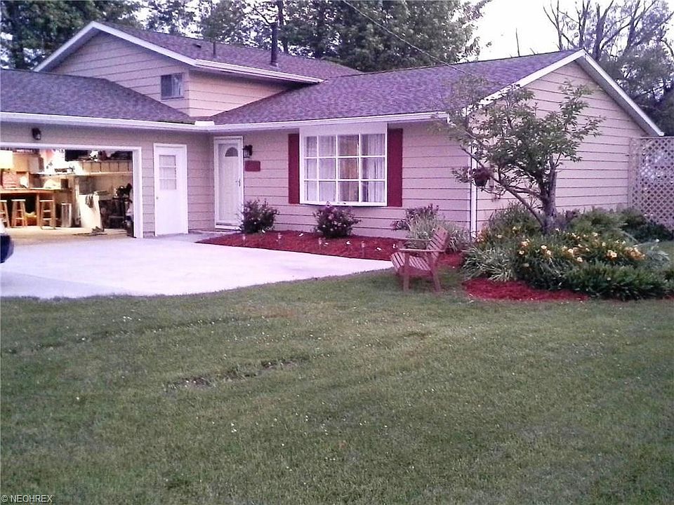 Beautiful split level in the heart of North Ridgeville with many updates and neutral décor. Newer flooring and paint throughout. Total tear-off roof in 2014. Great park like yard totally fenced. Enter the home in the foyer overlooking the living room with hardwood laminate flooring and fresh décor. Formal dining room with new lighting, hardwood laminate flooring and lovely décor with slider leading to the large deck with newer post lights and overlooking the park like backyard. All appliances stay in the eat-in kitchen with newer neutral décor. Family room boasts neutral décor and leads to bedroom #4 which can be used as a den or exercise room. Laundry and guest bath are conveniently located off family room and leads to the 2.5 car attached garage. There are three generous sized bedrooms and a full bath with fresh décor and newer flooring throughout.