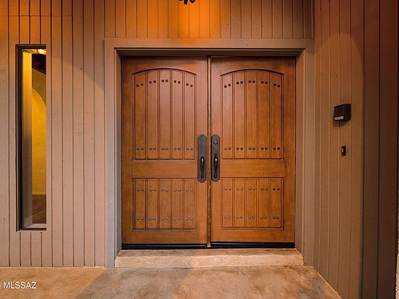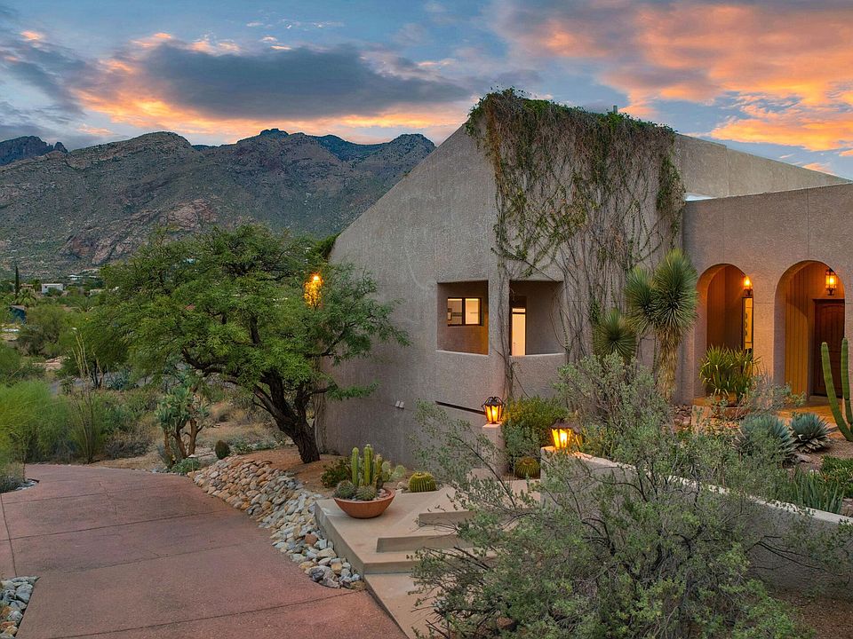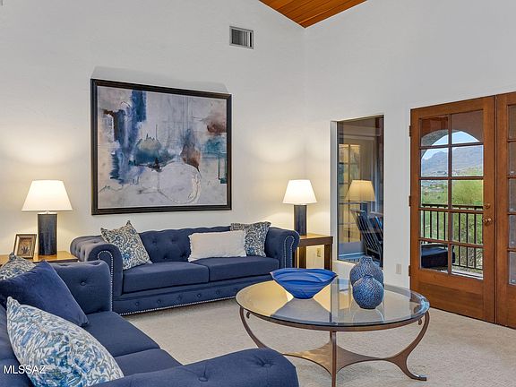 Move right into this wonderful retro 1970's architect designed home surrounded by our beautiful desert and sitting on a hilltop with panoramic views of the city & sweeping views of the Catalina Mountains. The very large kitchen may, indeed, be the heart of this home & if you love preparing food for those special people in your life, this is the place to do it. And, dining may be on your south patio overlooking the pool & city lights or casual in the kitchen dining nook or more formal in the dining room. This is a home for comfortable living w/ the primary en suite on the main floor with mountain views and 5 more bedrooms; 2 baths on the lower level. The primary also enjoys a covered porch that is the perfect place for watching fabulous Skyline CC fireworks High wood plank ceilings in the living areas & the large living room w/cozy fireplace opens to the porch for enjoying sunsets. as the sun sets & casts it's blues and pinks on the mountains. Personally, I love the cozy den that invites curling up with a good book & enjoying the city lights.. Plenty of room for the gym you've been dreaming of or the craft/sewing room. The long driveway to the top of the hill insures the quiet and privacy one dreams of. Tons of storage w/ plenty of walk-in closets & super storage in the garage along with a small workshop. There are so many ways to live in this lovely home. Just painted inside with new carpet & ready to move into & enjoy.