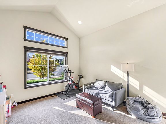 Welcome to Whiskey Creek! Gorgeous, single-owner home on an oversized corner lot. 4 beds/2.5 baths offering an open layout with vaulted ceilings, and modern design and updates. Large entryway opens up to the spacious living room and kitchen. New granite countertops and new SS appliances make for a perfect place to cook and gather with friends. Extra wide stairway leads up to the large primary bedroom and bath, equipped with walk-in closet, and stand-alone tub/shower. Enjoy your massive back patio and fully fenced yard that provides privacy and room for entertaining. New exterior paint and built-in forced air A/C. Beautiful glimpses of Mt Baker, territorial and neighboring green space views.
