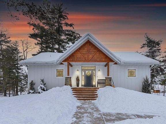 Don't miss this recently built four bedroom, three bath Gull Lake Chain home. This home features an open floor plan, quartz counter tops, tiled back splash, custom cabinets, vaulted beamed ceilings, custom light fixtures, gorgeous fireplace, many custom built ins, large lake side deck, a full finished walkout basement, wet bar area in the basement, tiled showers, two detached garages, shed, boat house and so much more. Home sits on a level lot to Round Lake and has an incredible sand beach. There are living quarters above the garage to put the over flow of guests. This is a once in lifetime property. Set up a showing today.