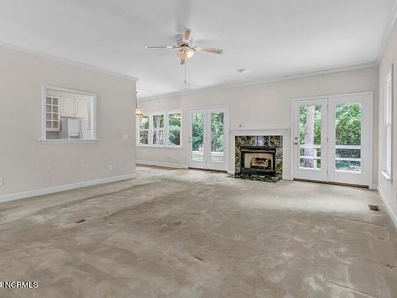 Last Chance opportunity to own a home in the sought after Shinn Point neighborhood for this price. While the home may benefit from updates, it allows you the chance to customize and modernize according to your own style. The open floor plan lives large with over 3,500 heated sq ft with the heart of the home flowing between the large family room, living room and open dining room surrounding the kitchen. The unique feature of this home is the dual master suite on the main level with his and her closets and his and her baths. The master suite boasts not one, but two full bathrooms, one bath with tub/shower and the other with shower. Convenient to the primary level is an additional guest bedroom with full bath. The home lives larger than it seems with 2 large bedrooms upstairs connected by a jack and jill bath room. If that is not enough, there is the bonus of having a finished room over the garage by a separate stair case that is ideal for home office. This spacious home sits on a generous .5 acre lot with mature trees and is within walking distance to Bradley Creek Elementary school, and coveted Roland Grise and Hoggard school district. Another unique feature is the 2 car garage with pull through design door on the back making parking a breeze or gardening. Recent updates to the home are new vinyl windows, new HVAC for both floors ensuring efficiency, and a roof update within the last 5 years. All the mechanics of the home are complete, now you can come in and customize to your taste. Don't miss your chance to own this quality built home in a prime location within walking distance to the ICWW.