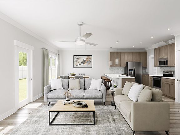 Under Construction-The Katelyn. Step into the entry from your covered front porch and rejoice in the open concept layout, creating the perfect space for entertaining friends or gathering with family in the generously sized living room/dining room area. Gather around the quartz island in the kitchen to share appetizers & stories about your day. Step outside to the patio and put some food on the grill. Head upstairs to your secluded primary suite featuring a trey ceiling, standing shower, dual sinks, and huge walk-in closet. On the other side of the home you'll find 2 bedrooms with trey ceilings and a full bath. 2 car garage for extra storage. Photos/videos of similar homes, options may not be