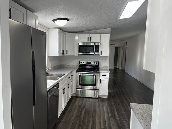 Completely remodeled double wide nestled off the road on 1.36 acres. This gorgeous lot backs up to the Fred Meijer walking trail that goes for miles. This home has new metal roofs on both the house and garage. Three bedrooms with 2 full baths. Master Suite. New kitchen with soft closer doors/drawers. New Stainless steel appliances included. Don't wait. You could be in before Christmas. Seller will consider land contract terms with a large down payment