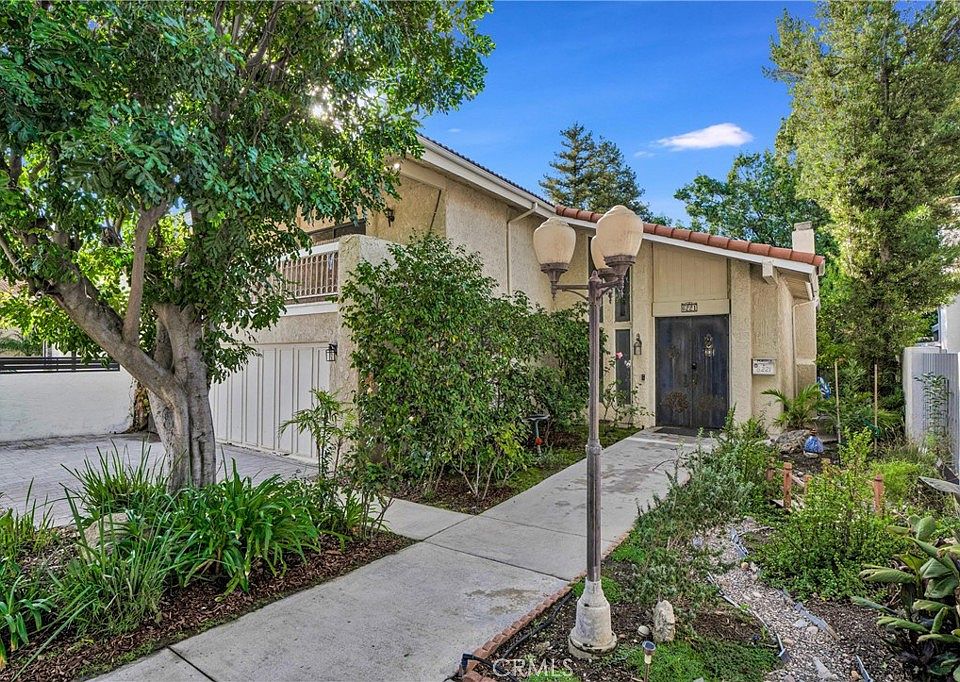 Tucked into a quiet pocket of Valley Glen, this inviting two-story home welcomes you with an entryway featuring stone tile flooring and a step down into a spacious living room with cathedral ceilings, a central fireplace, and sliding glass doors that open to a private backyard oasis with a sparkling pool and spa tucked among mature foliage and fruit trees—kumquat, tangerine, orange, and lemon. The newly remodeled kitchen is the heart of the home, offering quartz countertops, a 5-burner gas range, a lazy Susan, and a dedicated barista station, while two flexible spaces on either side allow for customizable living or dining layouts; a powder bath is conveniently located downstairs. The attached 2-car garage has been converted (without permits) into additional living space that includes three separate rooms plus a laundry room, perfect for work, hobbies, or guests. Upstairs, three bedrooms await, including a primary suite with its own private balcony accessed through a sliding glass door, and an en-suite bath with soaking tub and separate shower, plus a full hall bath with a dual-sink vanity. In addition to a new roof (2024), upgraded sewer line, and HVAC, the location is a standout: just minutes from Los Angeles Valley College, close to the scenic Tujunga Wash Greenway and L.A. River walking paths, and only a short drive to the trendy NoHo Arts District offering a variety of shops, restaurants, theaters, and galleries.