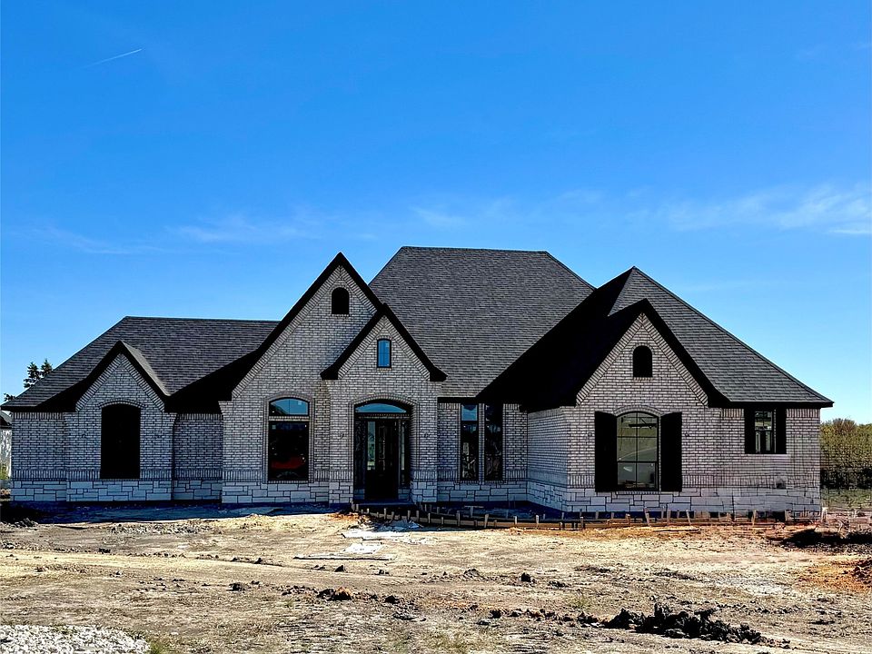 Experience modern luxury and thoughtful design in this stunning new build on a 1-acre lot. This 3-bedroom, 3-bath home features a dedicated office, tech room, and an open floor plan perfect for today’s lifestyle. The exterior boasts Capstone King Size brick, white limestone accents, black-finished vinyl windows, LED lighting, and Onyx Black shingles. A black garage door with smoked glass, sprinkler system, Magnolia tree, and Crepe Myrtles add timeless curb appeal. Inside, Repose Gray walls, white trim, quartz countertops, and Luxury Vinyl Plank floors create a clean, cohesive look throughout. The spacious family room includes a 5-ft linear electric fireplace, accent wall, 84” ceiling fan, crown molding, and a beverage nook with mini fridge. The gourmet kitchen offers a large island with seating, marble backsplash, quartz counters, bar area, double ovens with microwave, stainless steel Whirlpool appliances, and 36” built-in 5-burner cooktop with pot drawers. The primary suite features a recessed ceiling, bay windows, and crown molding. The spa-inspired bath includes a freestanding tub, walk-in shower with rainfall heads, dual vanities with makeup area, and closets with built-ins. Two secondary bedrooms share a bath with walk-in closets and a cozy window bench. Additional highlights include an oversized 3-car garage with dual 50-gallon water heaters, mudroom with deep sink and storage, custom cabinets throughout, and a 20’x20’ covered patio ready for an outdoor kitchen. Energy-efficient spray foam insulation, Carrier HVAC systems, and premium finishes complete this exceptional home—where luxury meets comfort. This beautiful neighborhood boasts lots of trees and privacy. Nearby conveniences include parks, schools, shopping and easy highway access.