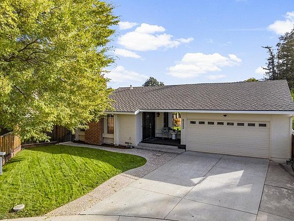 Beautifully updated ranch home on a quiet Almaden Valley cul-de-sac, where turnkey comfort meets indoor/outdoor living. An inviting front yard with a covered porch and lawn sets the tone. A designer front door with sidelights opens to a dramatic sunken living room with cathedral ceilings and a brick-clad fireplace.