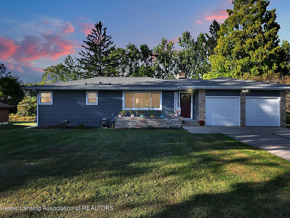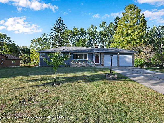 Located in Delta Township and Grand Ledge Schools, this 3 bedroom, 2.5 bath home has been beautifully updated with a new roof, HVAC, and water heater since 2022. Sitting on just under half an acre, this ranch home, has a sprawling backyard with a brand new stamped concrete patio that backs up to a spectacular walking trail that ends at nearby Sharp Park. The kitchen has been gorgeously remodeled, with quartz counters, stainless steel appliances, new cabinets, and a large peninsula. The rest of the main floor has pristine hardwood floors, a fireplace in the living room, and one and half remodeled bathrooms. The walkout lower level has a huge second living room with a stunning stone mantel around the second fireplace and classic wood paneling. With two other rooms that could be future bedrooms, a full bathroom, and a large laundry room that could be converted into a second kitchen, the lower level could make for a spacious in-law suite with minimal effort and expense. Opportunities like this one don't last long, so schedule your private showing today!