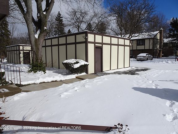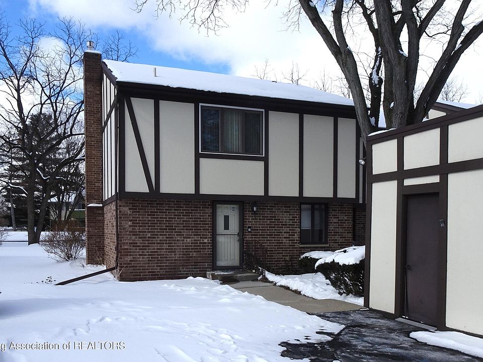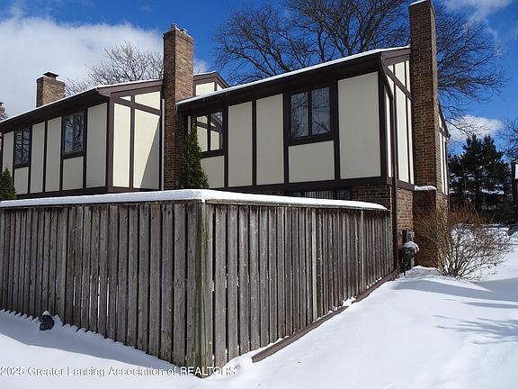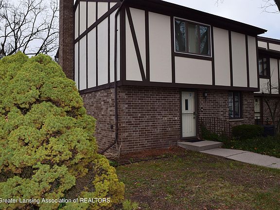 Welcome to the Carriage Hills Condominium complex! Great location. Close to Donley Elementary, CATA bus line, neighborhood shopping & minutes to downtown E. Lansing & MSU! Spend time at the complex pool or join friends in the club house for special events. The association just completed new roofs on all the buildings in Sept. of 2024! This end unit opens up into the hardwood parquet entry. Access to ½ guest bath, living room with gas long fireplace, large sunny window that overlooks the private enclosed patio. Neutral plush carpeting. The kitchen was renovated several years ago with quality dark oak cabinetry, off white oak-banded laminate counters. Newer gas range, microwave, ceramic flooring. There is even room for a small kitchen table. Access the dining room from the kitchen & the living room. Slider to the brick patio area. Great flow for entertaining! Upstairs are 3 bedrooms. The primary is a great size, faces the front of the condo & has a door into the main bathroom. Walk-in closet & separate cedar closet. Both additional bedrooms have large bi-fold closets, neutral paint & carpeting. 3rd bedroom has been used as an office so the closet is compartmentalized but could easily be removed. The main bathroom has a tub/shower combination, wood vanity-solid surface sink/counter, vinyl flooring. Large hall linen. Additional living space in the lower level. 2 finished rooms with indirect lighting, small built-in "hospitality" buffet. The laundry/storage room has a utility sink & stool! 2nd finished room would make a great craft or exercise area. Featured updates include: stove-2023, furnace & AC-2022, Hi-efficiency washer & dryer-2022, Microwave-2021, water heater-2018, Ring alarm & doorbell system. Nest thermostat. Monthly condo fee is $547.50 & includes all water & sewer billing, trash, exterior building maintenance, snow & lawn, common areas, fire & liability insurance on the exterior of the condo. A working Radon mitigation system. Detached 1 car garage with door opener & side service door. Additional parking pad next to the garage. Come see for yourself. Immediate occupancy!