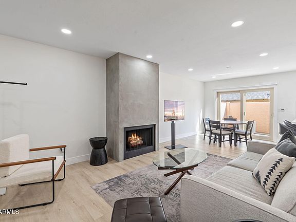 This isn't your average townhouse, it's been fully remodeled with the kind of style and updates you'd expect for sleek city living. Located just steps from Luci's Marketplace, Richardson's, Feeney's Restaurant and Madison Rose Lane Elementary, you're walking distance to everything that makes North Central living cool and convenient. The main level features hardwood floors, quartz counters, and a designer kitchen with stainless steel appliances, including a wine cooler. A modern half bath with quartz finishes makes hosting easy. Upstairs, you'll find two bedrooms with remodeled baths, hardwood floors, and electric shades that set the vibe with a touch of a button. Your private backyard is perfect for hangouts, finished with pavers and turf for a low-maintenance, party-ready space. The community pool and guest parking add to the lifestyle. If you've been looking for an affordable modern vibe in North Central Phoenix with all the right updates, this is the one.
