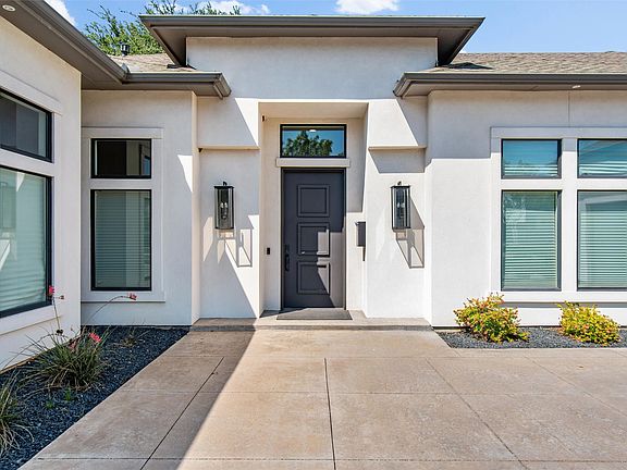 Offered at $1,895,000, this stunning 1-story residence spans approx. 4,400 sq ft on a generous 0.4-acre lot in Dallas proper. Located in coveted Preston Hollow, this home blends sleek design with functional luxury-featuring soaring 11–12 ft ceilings and expansive open-concept living and dining areas with custom built-ins and a stainless gas fireplace with ribbon lighting.