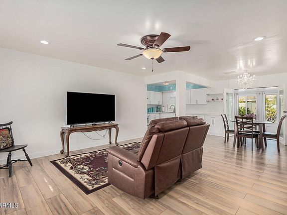 Discover a beautifully updated home in the heart of Dreamland Villa, designed for those seeking both modern comfort & an active lifestyle. With quartz countertops, a stylish subway tile backsplash, & wood plank tile flooring, this home offers a fresh, contemporary feel while maintaining warmth & charm. The open-concept kitchen & family room create the perfect space for entertaining, extending seamlessly into the versatile Az room—ideal for relaxing or enjoying the Az sunshine. If you love to craft or tinker, this home has you covered! The spacious laundry room features ample storage & shelving, while a 10x12 shed provides extra space for hobbies or projects. Step outside into your private, fully fenced backyard, where you'll find an abundance of fresh fruit with 4 orange trees, a grape fruit tree, and two fig treesa perfect touch of nature right at home.