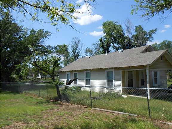 House sits on just over 1 acre; eat-in kitchen, nice size living room, bedrooms have carpet, rest of house has vinyl flooring over original wood flooring. Living room sub floor needs to be repaired, otherwise the house is soldily built, no leaks in roof, window was replaced about 10 yrs ago. Refridgerator to convey with sale. Large fenced lot.