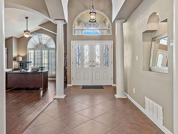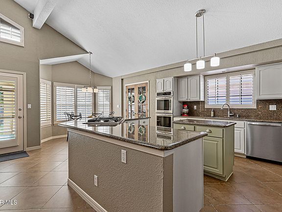 This bright, inviting 4-bedroom, 2.5-bath residence offers a downstairs master retreat and two spacious living areas perfect for family time and entertaining. The sun-kissed kitchen is a chef's delight with two granite islands and a brand-new cooktop—ideal for casual mornings or dinner parties. Enjoy refined finishes including plantation shutters and a centered fireplace that anchors the living space. Park with ease in the triple-car attached garage, and take advantage of ample additional storage throughout the home. The private backyard oasis features high-end Shaw turf, a putt-putt green, RV pad with 30-amp hookup, and a delightful she-shed office wired with electricity and lights. Evenings here are unforgettable—sit back and savor gorgeous ray of sunsets from your own yard. Zoned for Lundy, Hornedo, and Franklin schools. This Chaparral Park gem blends comfort, convenience, and style—come see it today!