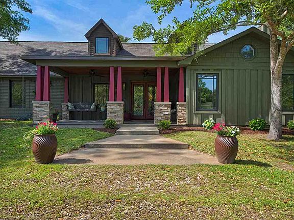 Updated Craftsman style home in a private wooded setting. Located on more than six and a half acres, this 4-bedroom home offers solitude yet is only 20 minutes away from Downtown Pensacola. Walking up to the home you will find a spacious front porch complete with a stained wood ceiling and ceiling fans. Through the double front doors you enter the living area, which features a wood burning fireplace, hardwood floors, painted wood ceiling, and a separate sitting area. The kitchen has been upgraded with granite countertops, island with seating, stainless steal appliances, custom cabinets, and tile backsplash. The dining area has an abundance of windows and overlooks the tranquil pool area. The master suite is also located on the first floor. The master bedroom has a large walk-in closet, and the master bathroom features dual granite vanities, garden tub, and tiled shower. Two of the three guest bedrooms are on the ground floor, and both are complete with wood look tile and crown molding. Upstairs you will find an office/library area with built-in shelves, as well as a spacious fourth bedroom. The outdoor living spaces are perfect for entertaining. Stepping into the backyard you will find a sparkling fiberglass pool with a screened enclosure, as well as a covered patio area. The home backs up to unimproved property as well as county conservation land, which further adds to the private setting. This unique property offers privacy, yet convenience, and features the modern updates that make this a truly remarkable home.