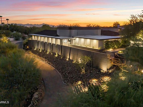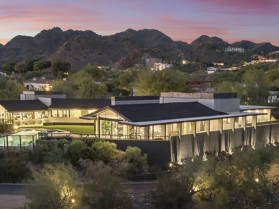 Nestled in the prestigious hills of Paradise Valley, this extraordinary mid-century modern masterpiece represents a rare convergence of architectural heritage and today's luxury. Originally designed by celebrated architect Christian Paul Yaeger, this timeless trophy property was meticulously reimagined and completely updated in 2019 by the acclaimed designer Joel Contreras, seamlessly blending iconic mid-century design principles with today's most coveted amenities. This stunning single-level residence offers all ensuite bedrooms with a generous office/den providing an ideal floor plan for both gracious living and effortless entertaining. Situated on an expansive and elevated 1.5-acre lot, the home commands breathtaking, unobstructed views of Camelback Mountain and Papago Park, with soothing city lights creating a sparkling backdrop as day turns to night. The thoughtfully designed low-maintenance desert landscape perfectly complements the home's clean architectural lines while celebrating the natural beauty of the Sonoran Desert.