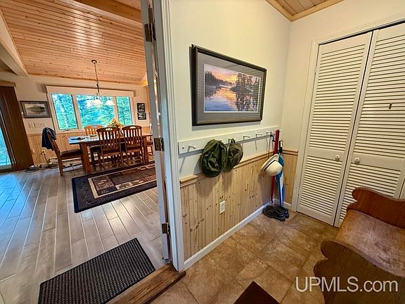 Nestled on the serene northwest shore of Straits Lake, this enchanting cottage offers the ultimate blend of privacy, comfort, and natural beauty. Surrounded by 180 acres of pristine, all-sports lakefront, the property boasts a stunning view of the island and a unique setting with water on one side and a wooded hill on the other—ensuring complete seclusion with no neighbors in sight. Thoughtfully updated from the early 2000s to today, the home features a custom kitchen adorned with rich maple cabinetry, abundant storage, a spacious pantry, and elegant engineered wood floors. The primary bedroom includes a private ensuite, while the guest room opens to a deck with a relaxing hot tub—perfect for unwinding under the stars. A grand wood-burning fireplace anchors the cozy living room, inviting warm gatherings year-round. Outside, a collection of charming outbuildings—including a boathouse, workshop, fish shed, and a peaceful gazebo—enhance the lifestyle, offering spaces for hobbies, morning coffee, or quiet reading. With a two-car detached garage and a massive 4+ car pole building, there’s room for all your toys and tools. Whether you're seeking a tranquil retreat or an active lakeside haven, this property is a rare gem that delivers both.