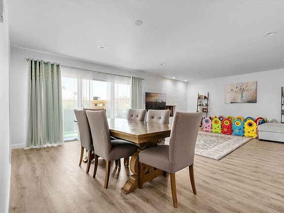 From the coveted city of North Hollywood, welcome home to this wonderful 3-bedroom, 2-bathroom, 1,541-SqFt modern condo! Upon entry, you're immediately immersed in an airy living room with adjoining dinning room featuring calming grey tone laminate floors, sliding glass door access to a private balcony patio space with neighborhood views, inset fireplace with a texture stone feature wall, and recessed lights, providing a comfortable space for all you entertaining needs. Venture towards the modern monochromatic kitchen enhanced by grey cabinetry with sleek handles and frosted glass doors for the upper cabinetry, granite counters, tiled backsplash, and stainless-steel appliances. There is a laundry area inside your unit too! The primary bedroom features an en-suite bathroom highlighted by recessed lights, a walk-in shower, and a dual vanity with extra storage. Plus, this great home includes plenty of additional built-in storage in the main hallway. The complex includes 2-carport spaces, a community laundry room, patio lounge space, and a glittering community pool to enjoy. Nearby Valley Glen Community Park, down the street from Starbucks, local restaurants and business, Vallarta Supermarkets, Walgreens, CVS, Los Angeles Valley College, minutes from NOHO West and the NOHO Arts District, plus easy access to the 170 Freeway!
