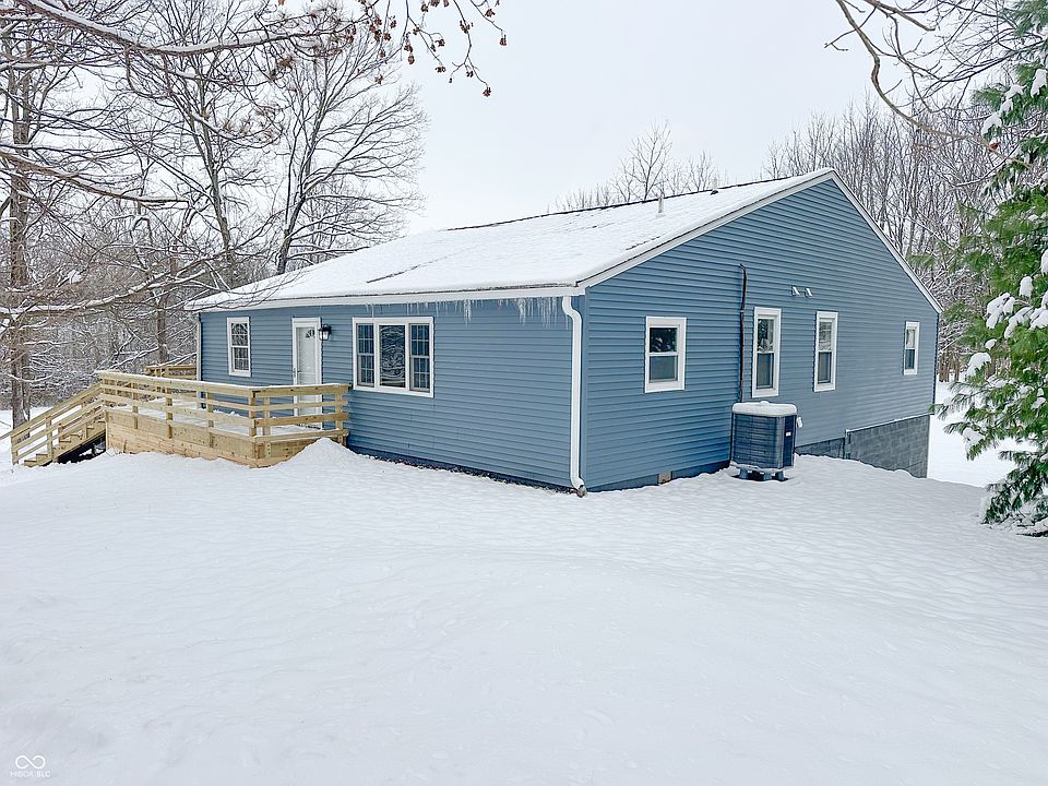 Discover peaceful country living on nearly 5 acres with this beautifully updated 3-bedroom, 2-bath home just outside of Greenfield Indiana. This 1,920 sq ft home features a newly renovated kitchen with modern finishes & large island, spacious living & dining areas with durable vinyl hardwood flooring, and spacious primary suite with walk-in closet and huge standing shower. Major mechanical updates offer peace of mind, including a new HVAC system, all-new plumbing, a 2-year-old water heater, and a brand-new water softener. Enjoy the abundance of natural light from all-new vinyl windows throughout the home. Step outside to a stunning 600 sq ft deck overlooking mature trees and the beautiful natural landscape-perfect for relaxing or entertaining. The property's east boundary is lined by Nameless Creek, adding privacy, scenic beauty, and a serene natural backdrop, complemented by a pond that enhances the tranquility of the setting. With an attached 2-car garage, an unfinished basement for storage or future expansion, and a quiet rural location just minutes from town amenities, this home offers the perfect blend of comfort, modern updates, and country charm. Ideal for buyers looking for land, space, and move-in-ready convenience.