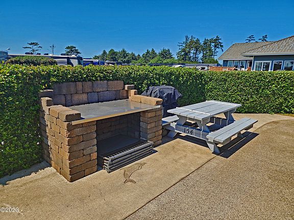 Beautiful back in lot located in the desirable Pacific Shores Motorcoach Resort. Year round ocean views, with ''seasonal'' lighthouse views, and conveniently located near the clubhouse and all of its amenities. Plus the bonus of being located near the trail to the beach and the pickleball courts! This lot comes with a built in work/prep station, a propane grill with cover, and picnic table. The coach in photos could be available for purchase as well! As an owner, you'll have access to the owners only lounge, kitchen, and gym, as well as two laundry facilities, and indoor and outdoor swimming pools, saunas and spas. The resort is rated 10•10•10 by Good Sam.