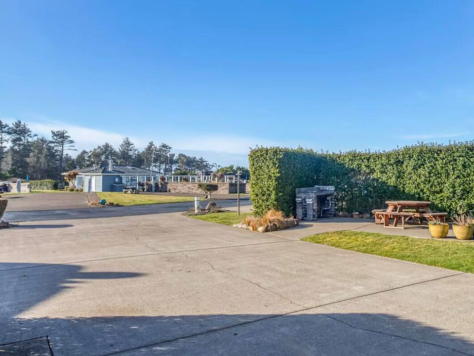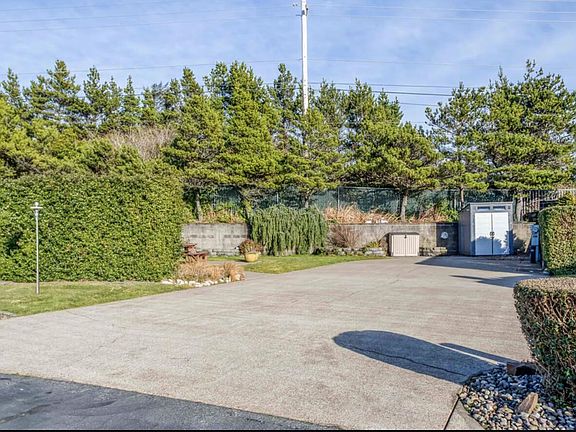 Back in lot; huge corner lot with tall mature hedges for privacy; expanded sitting area; BBQ or food preparing stand. If you need privacy, this is the one! Pacific Shores Motorcoach Resort is located on a bluff overlooking the ocean and has a lighthouse view. Nature walking trails through the wood and access to an uncrowded beach. A large clubhouse and owner's only lounge, gym and kitchen. Indoor/outdoor pools and spas and hot sauna.