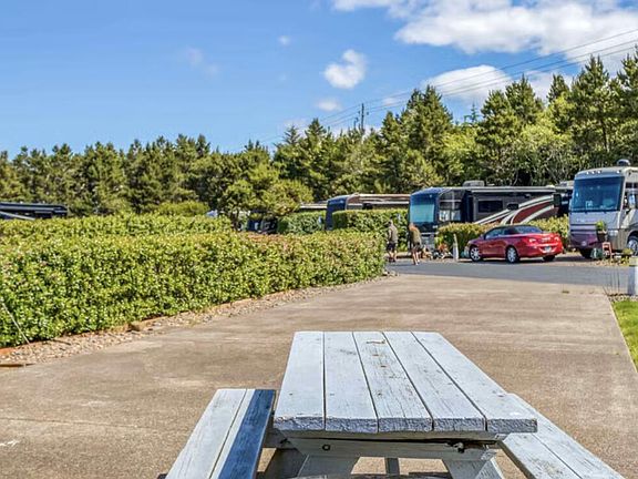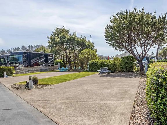 Back in lot with hedges on the side and back for privacy. Plenty of room to create your own outdoor living. Outdoor pools and spa near by. Pacific Shores Motorcoach Resort is located on a bluff overlooking the Pacific Ocean and has a breath-taking lighthouse view. Nature walking trails through the woods and private access to our uncrowded beautifully photogenic beach. A large clubhouse and owner's only lounge, gym and kitchen. Indoor and outdoor pools and spas along with our hot sauna steam room.