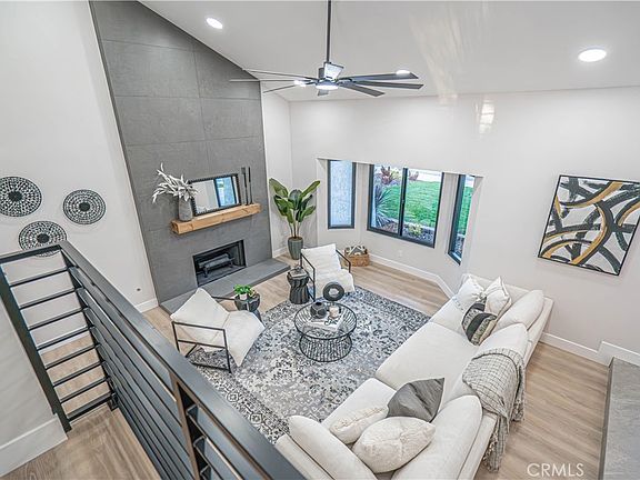 This gorgeous Morrison Ranch modern remodel has finally been unveiled! Nestled in a coveted cul-de-sac adjacent to the serene greenbelt, in one of the most sought after communities in Agoura Hills AND in the award-winning Las Virgenes School District sits this re-imagined 2 story pool home. Enter through the glass entry door into the grand living room with vaulted ceilings and cozy fireplace that seamlessly flows into the formal dining room. In the rear of the home is a spacious and inviting family room with a second fireplace and an 8’ bifold door to the backyard. A wet bar is steps away with a quartz countertop and black stained butcher block raised countertop. The kitchen is all new with modern cabinets, quartz countertops, stainless steel appliances and a flip out window with an outside countertop. The laundry is also located on the lower level. New modern wrought iron railings lead up the stairs to the second level with a generously sized primary suite and a spa-like ensuite bathroom with dual vanities, free standing tub, bluetooth speakers, heated towel rack and  porcelain walls. There are three additional bedrooms complemented by a hallway bath with dual sinks. The backyard features a newly re-plastered pool with a mini pebble finish. With a low HOA, convenient to restaurants, shopping and minutes to the 101 freeway, don’t miss the opportunity to call this your new home!