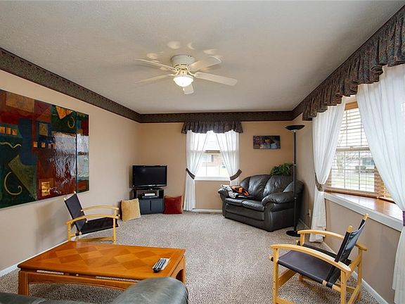 Hard to find ranch home with open floor plan situated on a private lot. No rear neighbors within view. Backs up to trees and very private. This home is in move-in condition. Three spacious bedrooms and 2 full baths. Living room is large and has a bay window. Kitchen is spacious and a large breakfast area provides plenty of room for formal and informal dining. Updates include replacement windows, newer roof shingles, vinyl soffits, insulated garage door, ceiling fans, 5" gutters, carpet 2017, patio door, ceramic tile in baths, 6 panel hard board doors and much more. Back yard is fenced and there is a large concrete patio for entertaining and relaxing. This home will not last long and is a must see.