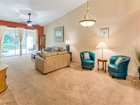 PRICED TO SELL! This is a spacious and furnished villa in a great location in South Naples. Very well maintained home with granite in the kitchen, accordion hurricane shutters, electric shutters in lanai, new roof, new washer, new screened-in lanai cage coming soon. The AC, hot water heater, dryer are all less than 3 years old. Cathedral ceilings make the villa feel bright and airy. Mandalay is a small gated community with low HOA fees of only $925/quarter.