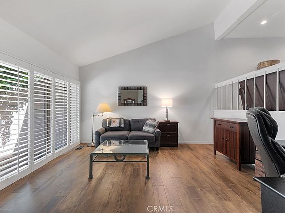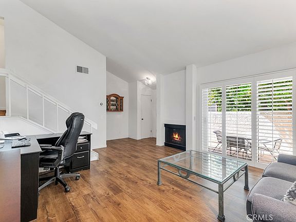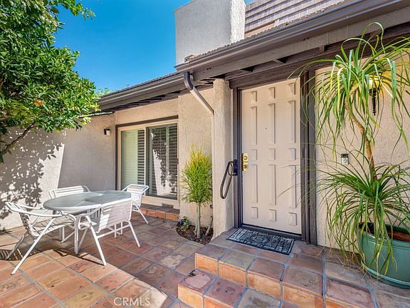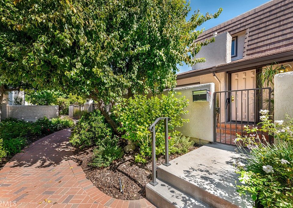 Nestled within the sought-after Villa Valencia community of Woodland Hills, this end-unit townhome offers the perfect blend of privacy, comfort, and style. A gated front courtyard welcomes you into a light-filled interior with an open floorplan, engineered hardwood flooring, and recessed lighting throughout the main level. The spacious living room features a cozy fireplace and sliding glass door that opens directly to the private courtyard, creating a seamless flow between indoor and outdoor living. A few steps up, the open-concept mid-level unfolds with two expansive living and dining areas that flow seamlessly together, offering flexible use of space and a wonderful sense of volume overlooking the main living room below. The kitchen opens to this versatile area and is thoughtfully designed with a center island with seating, quartz countertops, white shaker-style cabinetry, stainless-steel appliances, stone tile flooring, and a classic subway tile backsplash. A convenient powder bath completes this level. Upstairs, both bedrooms feature en-suite bathrooms, including a spacious primary suite with double-door entry, walk-in closet, and an elegant three-quarter bath showcasing an oversized shower with skylight and separate vanity area. The secondary bedroom includes a full en-suite bath with shower/tub combo. Additional highlights include a two-car attached garage with direct access, dedicated laundry space, and extra storage. As an end unit, the home shares only one wall and enjoys abundant natural light throughout. Residents of Villa Valencia enjoy a resort-like setting with lushly landscaped grounds, a sparkling pool, relaxing spa, and peaceful greenbelts. Ideally located in the heart of Woodland Hills, this home is minutes from premier shopping and dining at The Village and Westfield Topanga, as well as neighborhood favorites along Ventura Boulevard. Outdoor enthusiasts will appreciate nearby hiking trails and parks, while convenient access to Topanga Canyon Boulevard, Mulholland Drive, and the 101 Freeway ensures an easy commute. Thoughtfully appointed and ideally situated, this townhome presents an exceptional opportunity in a highly coveted Woodland Hills community.