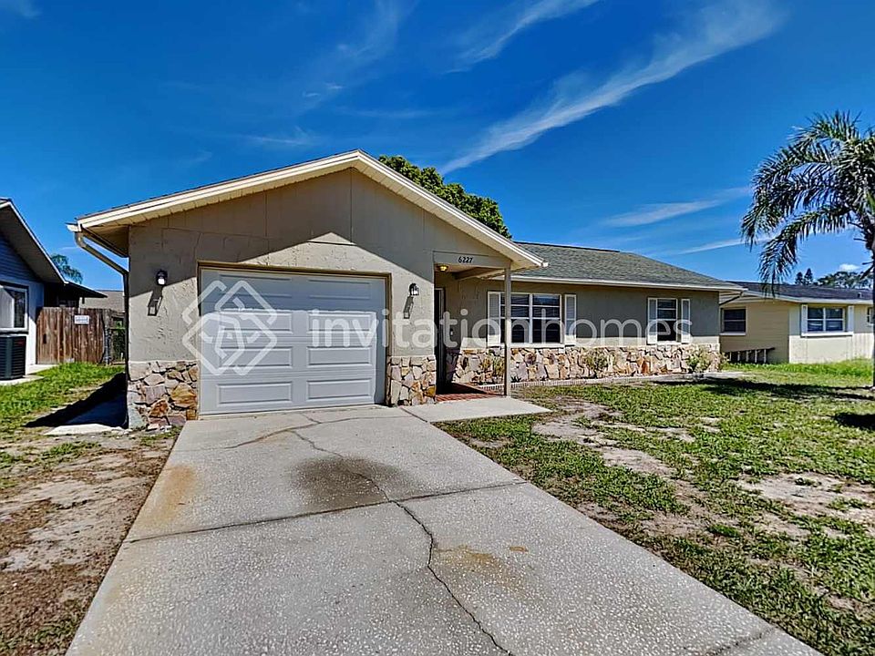 Home Features and Amenities: Air Conditioning, Fenced Yard, Garage, Long Lease Terms, Luxury Vinyl Plank, Pet Friendly, Primary Bedroom on Main, Single Story House, Smart Home, Tile, Walk in Closet, W/D Hookups, and professionally managed by Invitation Homes.