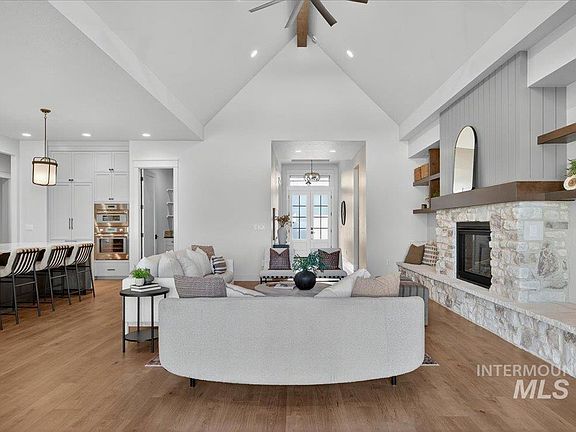 The Fieldstone RV is another stunning custom design by Maybon Homes—known for expert craftsmanship, smart design, and top-tier finishes. This 3,065 sq ft single-level home features 3 beds, 3.5 baths, a dedicated office, and an impressive 5-car garage with a 50' RV bay, complete with UV-stable polyurea floors. Soaring 10' and vaulted ceilings, 8' doors, and custom cabinetry throughout complement a chef’s kitchen with a striking 12' quartz island, expansive quartz countertops in the kitchen and all baths, a Thermador refrigerator, Thermador appliances including double ovens, and a spacious walk-in pantry—a dream setup for entertaining. The great room’s dramatic vaulted ceiling extends seamlessly to the expansive covered patio through full-height double glass slider doors, creating an exceptional indoor–outdoor living experience. A stone fireplace with extended hearth seating, floating shelves, and painted vertical paneling above adds warmth and architectural style. A separate family room or second primary suite includes an ensuite bath and wet bar, perfect for guests or multi-generational living. Additional highlights include private ensuite bedrooms, professional landscaping, and a soaring covered patio ideal for outdoor gatherings. Expertly designed and built by Maybon Homes, where every detail reflects a commitment to quality and livable design.