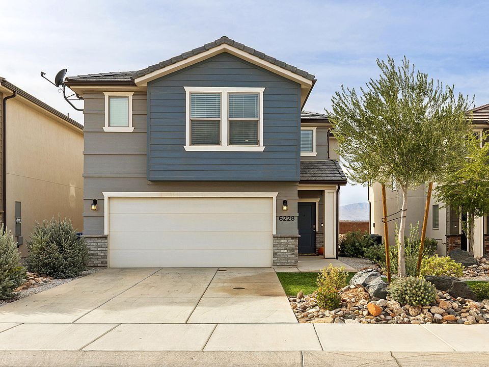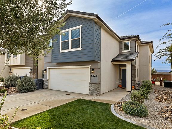 This home sits privately with no backyard neighbors, offering a sense of quiet and space that's rare to find, not to mention mountain views!! Front and backyard landscaping are fully maintained by the HOA, so you can spend more time enjoying the view and less time on upkeep. Inside, the home has been kept in immaculate condition, featuring luxury vinyl plank flooring, generous storage, and a spacious primary suite with a tiled shower, double vanity, and walk-in closet. Security and comfort come standard with a smart-home system, keypad entry, and Ring doorbell — giving you peace of mind whether you're home or away. Conveniently located near schools, parks, and scenic trails, with dining, shopping, Sand Hollow & Warner Valley just minutes away!